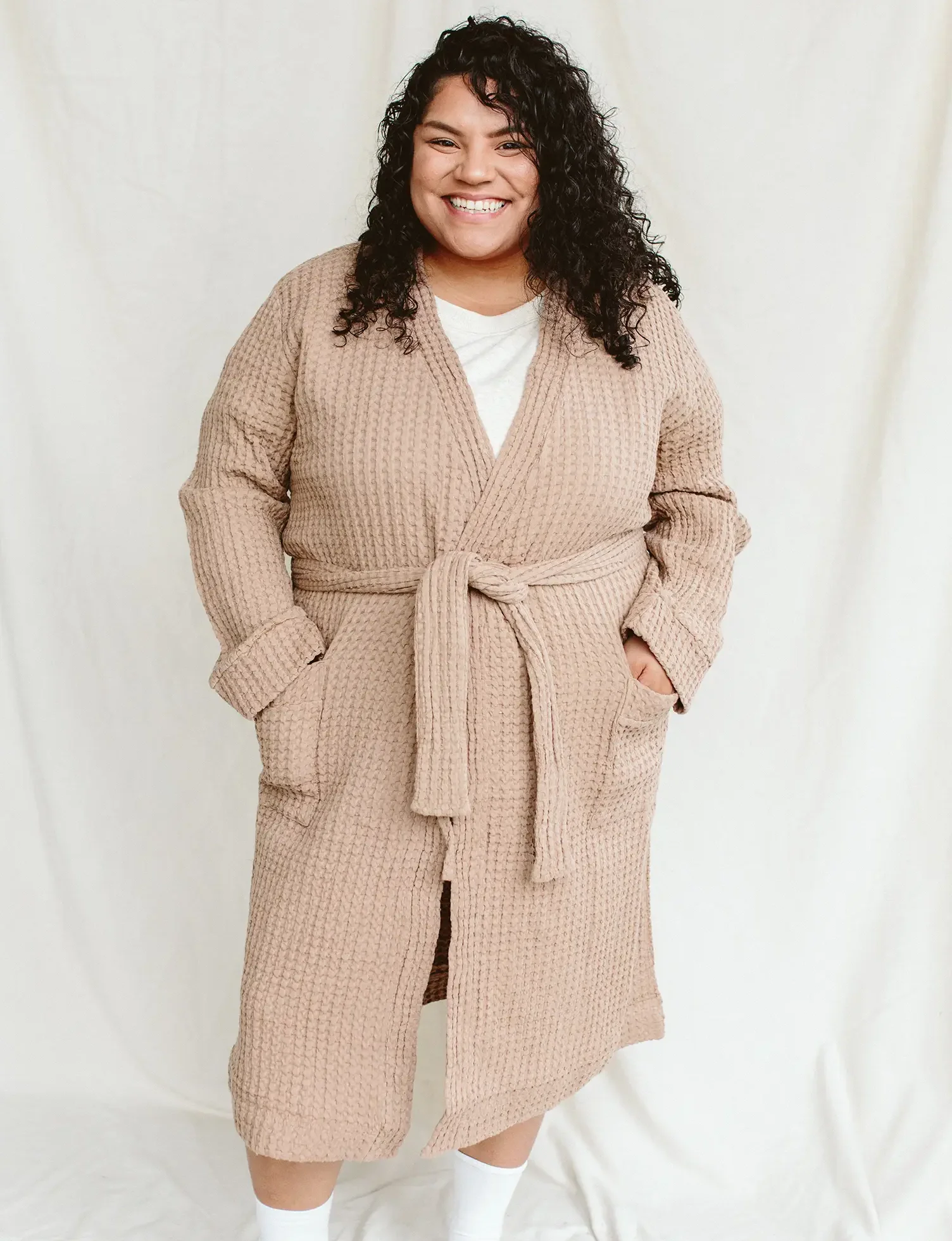 Our robes are made for you: every size, every stage, every season. With our new 100% cotton waffle fabric created to add a textured, breathable, and cozy touch to all those precious moments. Designed a little shorter in length for an easy fit as you chase after your on-the-move babes.