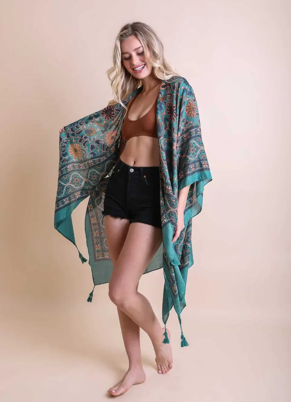 Moroccan style soft & lightweight Kimono w/ tassels.