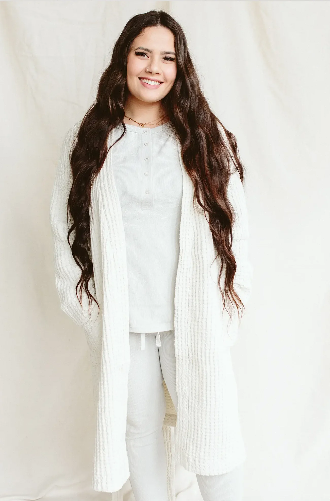 Our robes are made for you: every size, every stage, every season. With our new 100% cotton waffle fabric created to add a textured, breathable, and cozy touch to all those precious moments. Designed a little shorter in length for an easy fit as you chase after your on-the-move babes.