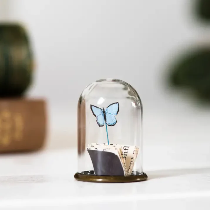 Paper Miniature Butterfly & Book in Glass Dome (more colour options)