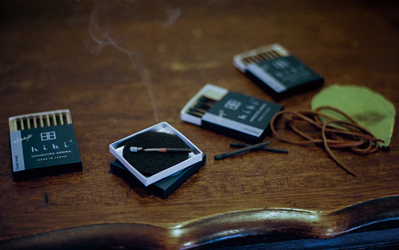 Hibi is an incense stick you can light easily without a lighting device. Innovative combining the incense of Awaji Island and Harima matches, two traditional artisan industries. Perfect for gifting and traveling.